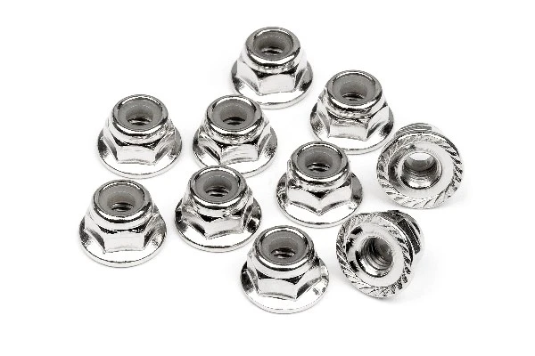 HPI Racing Serrated Flange Lock Nut M4 (Silver/10Pcs)