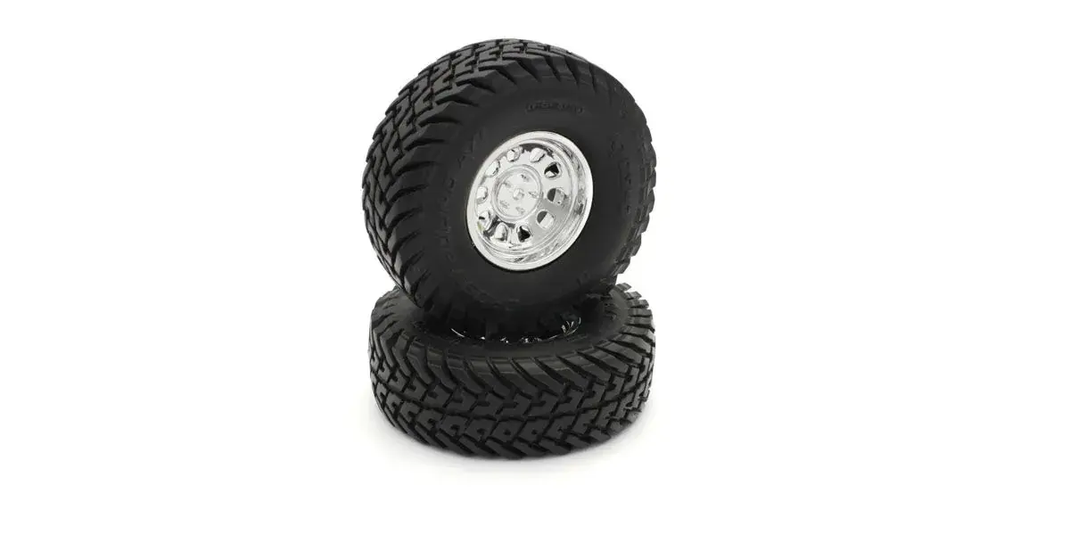 Pre-Glued Tyres Kyosho Outlaw Rampage Pro (2) Chromed Wheels