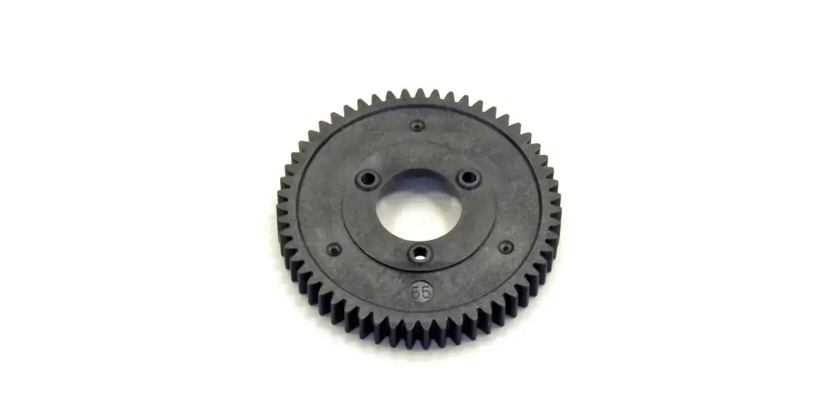 Keep your Kyosho V-One R4 or R4 Evo running at peak performance with this genuine 55-tooth spur gear. As a critical drivetrain component, the spur gear transfers power from your motor to the wheels, making it essential Kyosho spare parts to have on hand. Whether you're racing competitively or enjoying casual RC hobby driving, this replacement gear ensures smooth acceleration and reliable performance on the track. Genuine Kyosho parts like this maintain the precision engineering your radio controlled car demands.