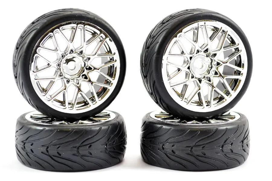 Upgrade your radio controlled car with these striking Fastrax 1/10 Street/Tread tyres and chrome wheels. Designed for versatility across both on-road and off-road surfaces, this Fastrax RC combination delivers impressive grip and handling characteristics. The distinctive star spoke chrome finish adds a professional appearance to your RC car, whilst the quality tread pattern ensures reliable performance during competitive racing or casual driving. Perfect for enthusiasts seeking reliable RC car parts UK that combine style with substance, these wheels are an excellent choice for upgrading your 1/10 scale vehicle.