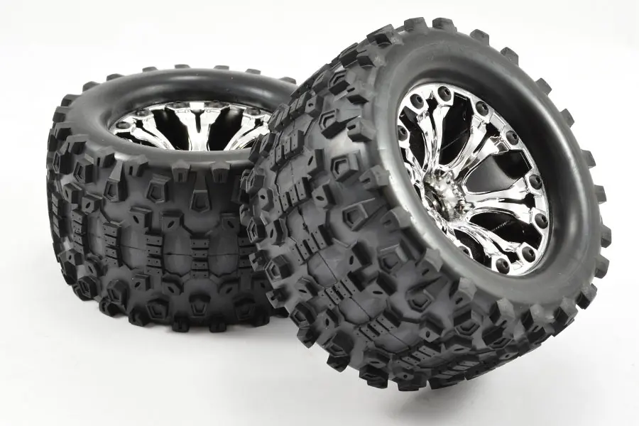 Suitable for most 1:10 Monster trucks with 12mm Hex fit and 5mm axle. Sold as pair.