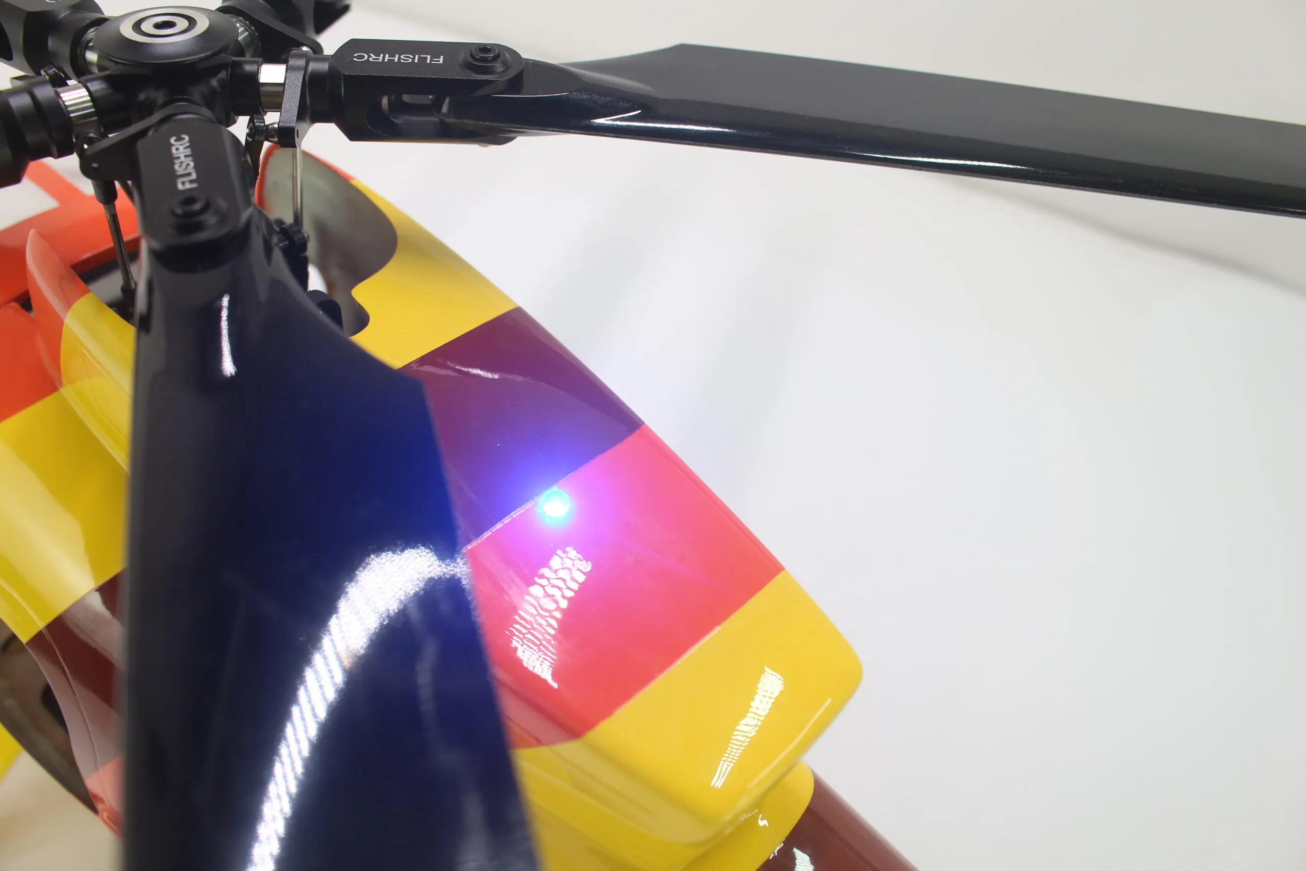 The fully metal rotor head is engineered for strength, stability, and realism, capable of withstanding high flight loads and vibrations. Designed to mimic the full-scale MD500’s rotor system for professional-grade performance. -