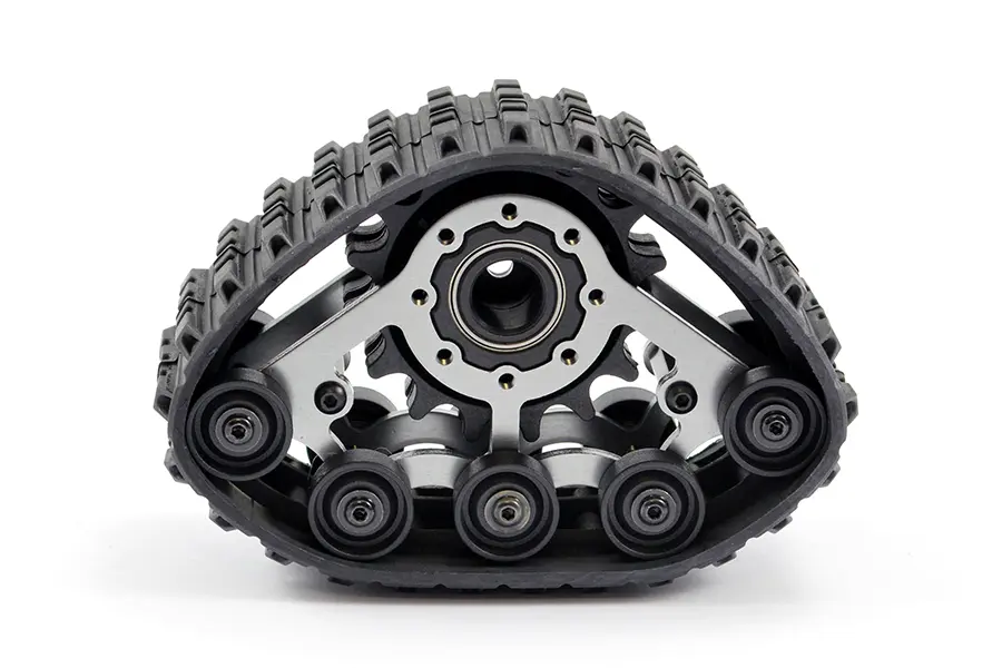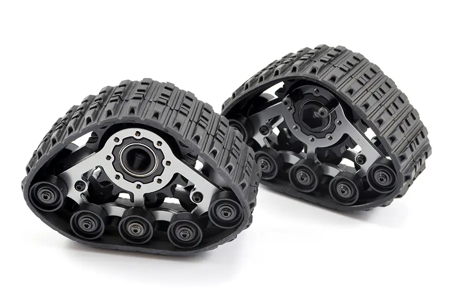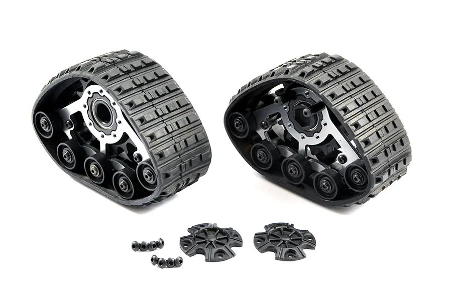 Designed to bolt directly onto the FTX Fury crawler, these units feature soft, plyable. block pattern rubber tracks that are 45mm wide and run with the help of a bearing supported centre drive cog and 10 black 20mm rollers. Moulded wheel caps screw to the side plates for a polished look.