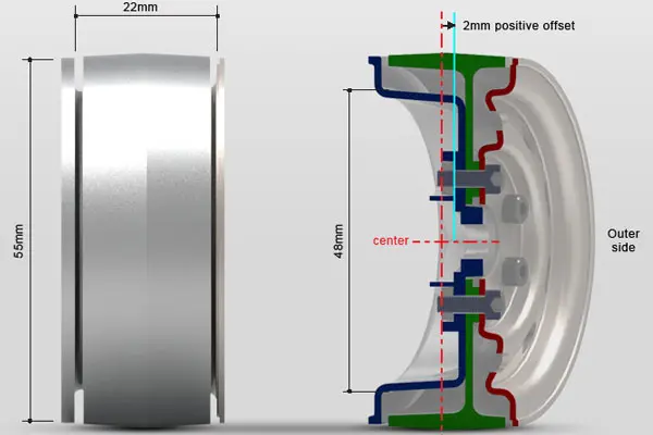 - Offset: 2mm Positive offset