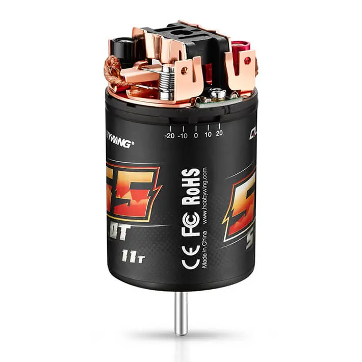Experience superior performance with the Hobbywing Quicrun Brushed 555 11T Motor, engineered for 1/10th scale radio controlled cars. This advanced brushed motor delivers up to 69% efficiency—up to 17% higher than standard alternatives—whilst running cooler under load. The innovative 5-slot design virtually eliminates cogging torque, providing linear response at all speeds for precise handling. Featuring adjustable mechanical timing (±20°), you can fine-tune performance for both clockwise and counter-clockwise applications. Built with high-temperature resistant magnets, ultra-thin silicon steel, and custom carbon brushes that rival brushless lifespan, this Hobbywing motor is designed for demanding driving conditions.