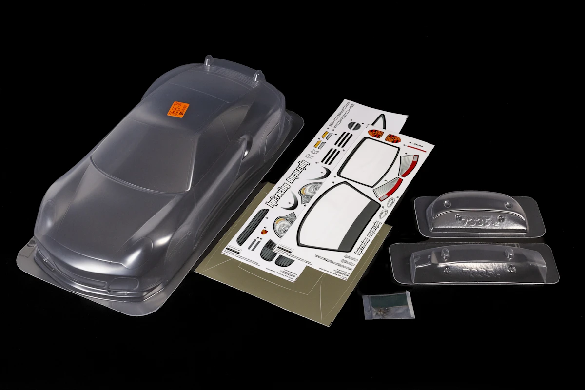 Like all HPI bodies, the Porsche 911 turbo is molded from extra strong, crystal clear polycarbonate plastic and comes with a clear protective overspray film, window masks and a large decal sheet. Made of flexible vinyl to fit every curve on the body, the decal sheet includes official Porsche decals, headlights, tail lights, and door handles, plus official Porsche and HPI Racing logos! The body also has drill locations marked for HPI touring cars, making it easy to line up the body mount holes.