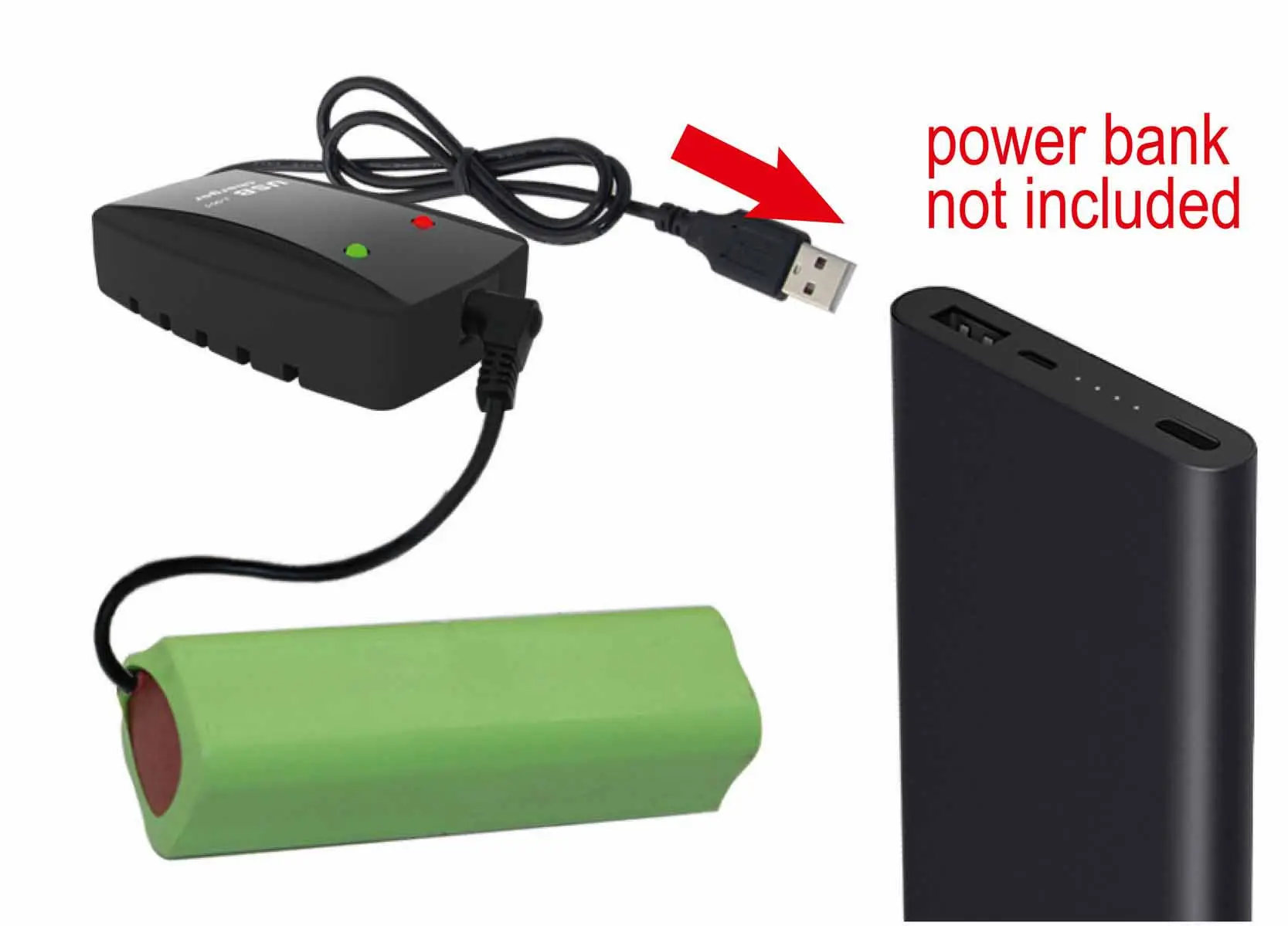 E). USB Power Charging: The USB charger can easily connect with power adapter, making battery charging more safe and convenient.