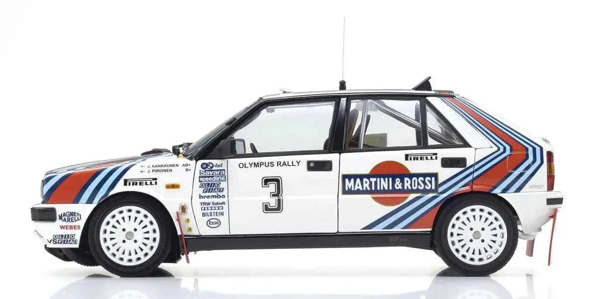 Kyosho 1:18 Lancia Delta HF 4WD Olympus Rally 1987 Martini Rossi Nr.3