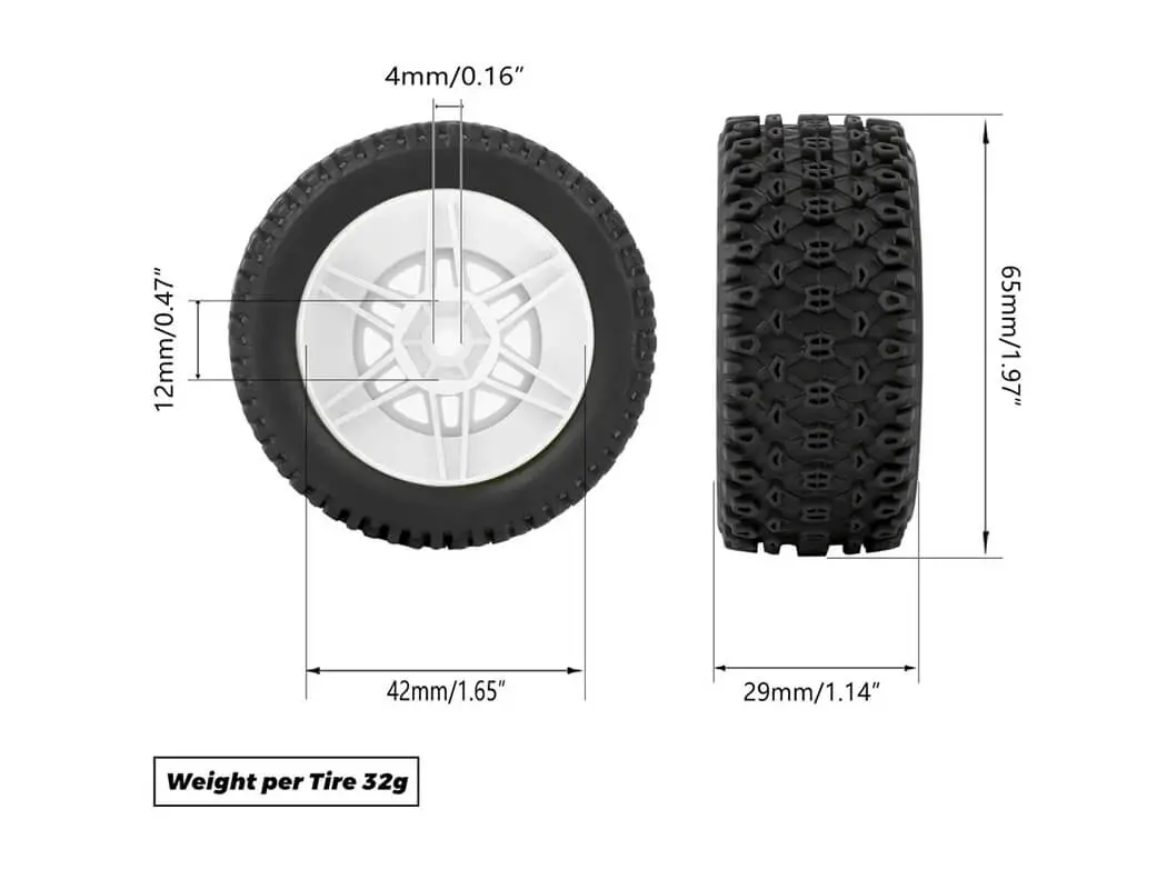 Total weight of wheel and tyre (1 piece): 32 grams