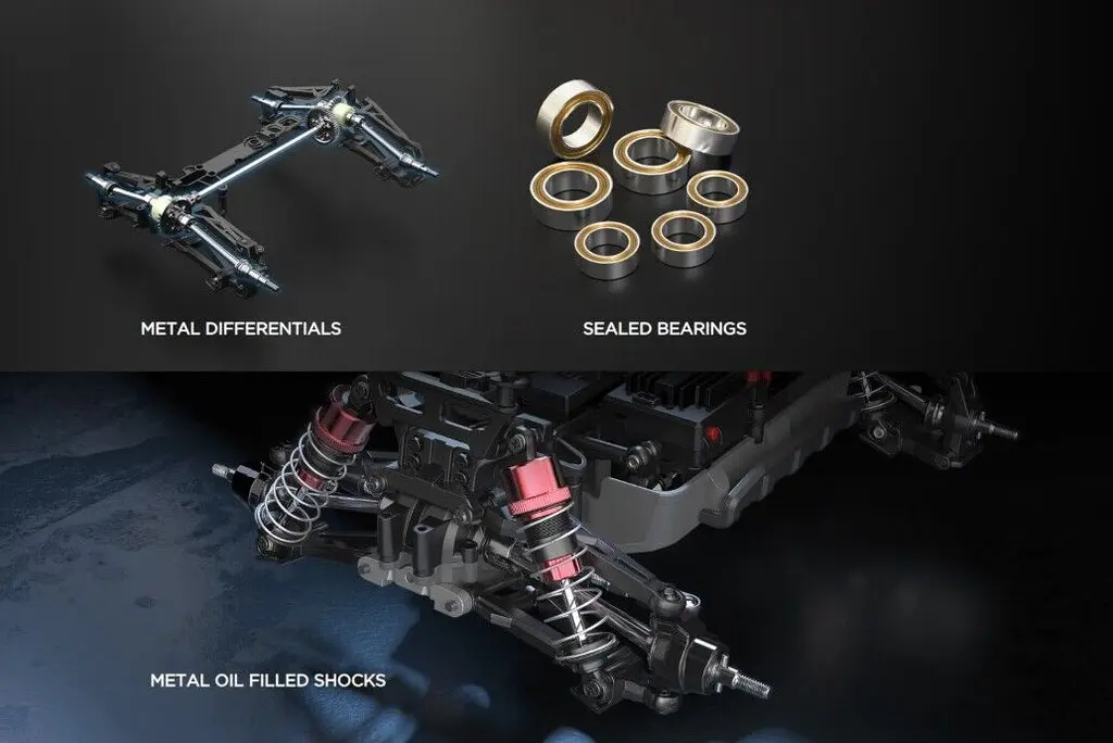Designed for hobbyists who like to tune and maintain their models, the Hyper-Go H16P features fully adjustable suspension, customizable camber and toe angles, and a chassis that can be upgraded with red alloy components for extra strength. With serviceable parts and room for upgrades, it’s a truck you can grow with.