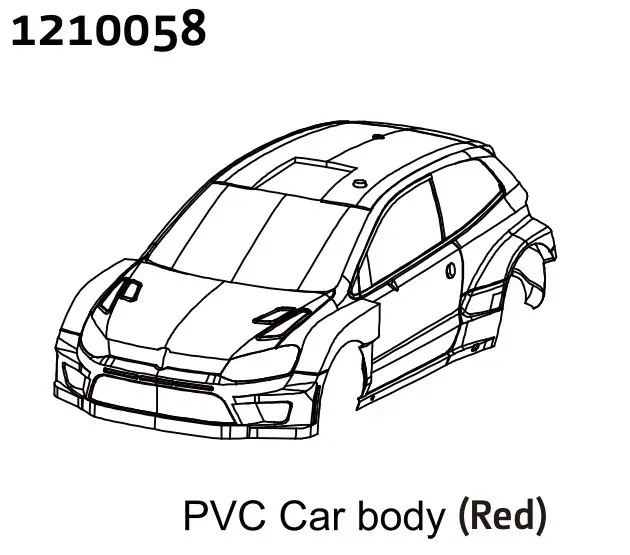 Genuine Absima part #1210058 — PC Rally Body Shell – red + Stickers. UK stock via Radio-Controlled.co.uk.