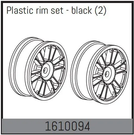 Genuine Absima part #1610094 — Plastic rim set – black (2). UK stock via Radio-Controlled.co.uk.