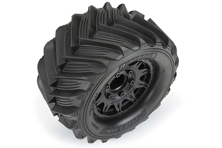 Are you looking for a scale and aggressive tire for your 1:10 Monster Truck? Pro-Line has the solution for you! Introducing the Demolisher 2.8" tire that features extremely sharp chevron style tread that will bite into any surface. Just like full-size monster truck tires that have been modified and grooved for maximum performance, the Demolisher tires feature scale grooves in between the chevron style tread for exceptional scale realism and extremely sharp tread. As you should expect from Pro-Line, the all-new Demolisher tire is made from soft and sticky rubber that will give your Monster Truck maximum wheelie-popping traction.