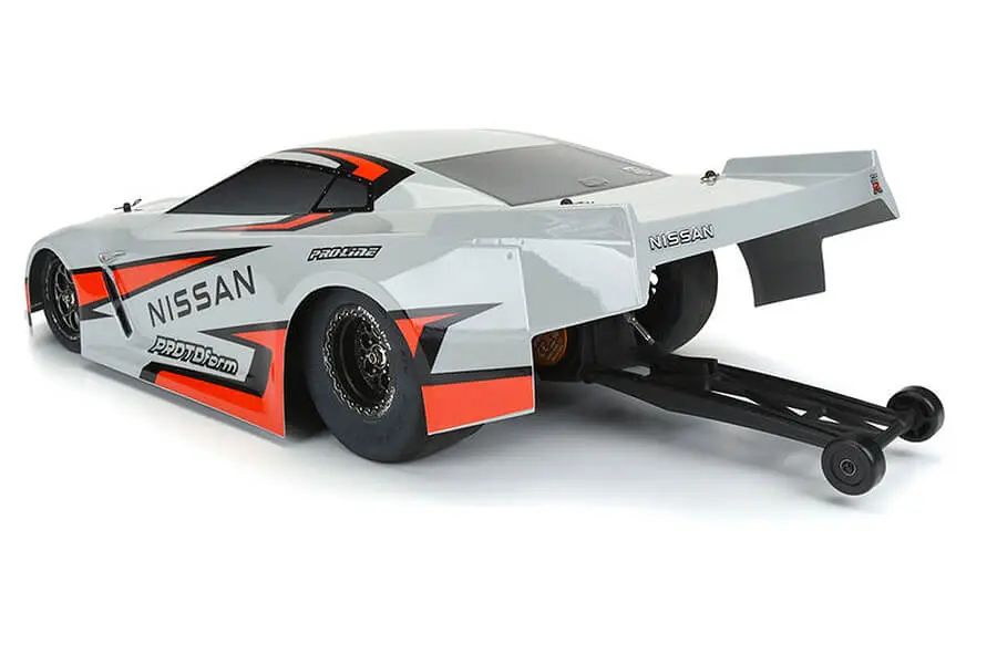 The officially licensed body is the ultimate aerodynamic upgrade to your Losi® 22S™ No Prep Drag Car or other 13.2" wheelbase drag car. We combined the signature wide-mouth grille, side vents, and powerful stance of the R35 GT-R™ with some stretched, pro-mod drag racing proportions to transform your no-prep car into a scale-1/4-mile import beast.