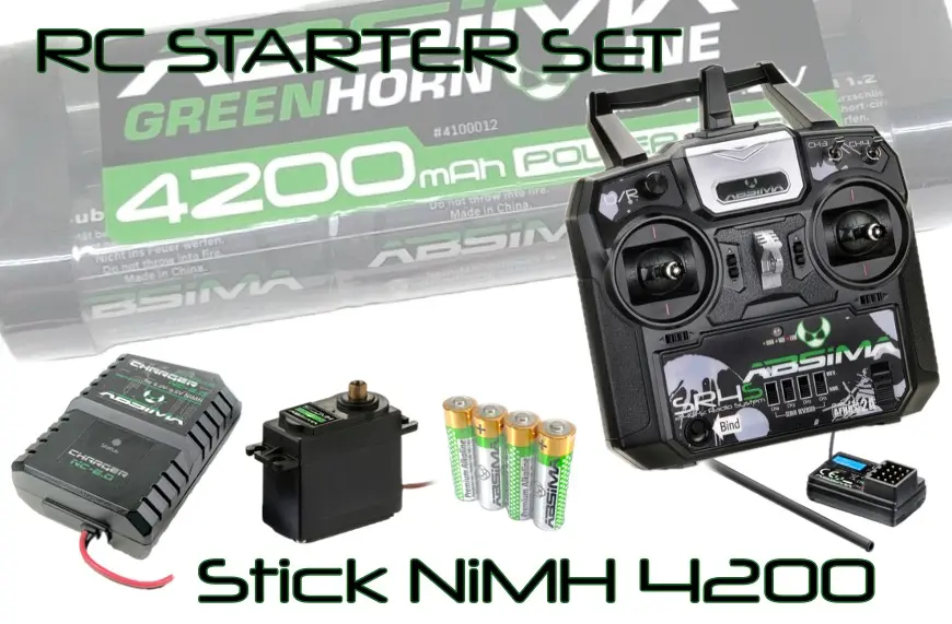 Genuine Absima part #2200015 — RC Starter Set "Stick NiMH 4200". UK stock via Radio-Controlled.co.uk.