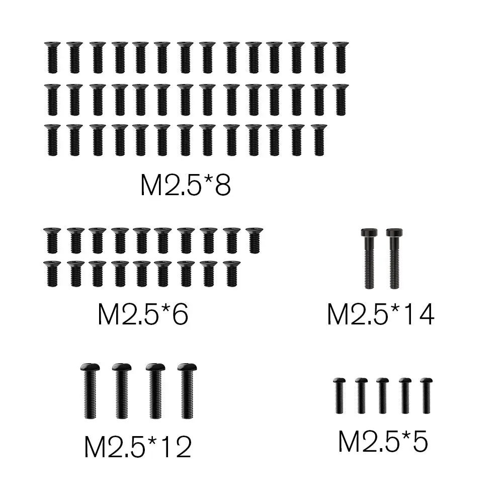 Replacement oval screw set to fit the Rlaarlo ROG1 and X12S. Includes the following sizes: M2.5x14mm, M2.5x12mm, M2.5x6, and M2.5x5mm. Part number R16063.