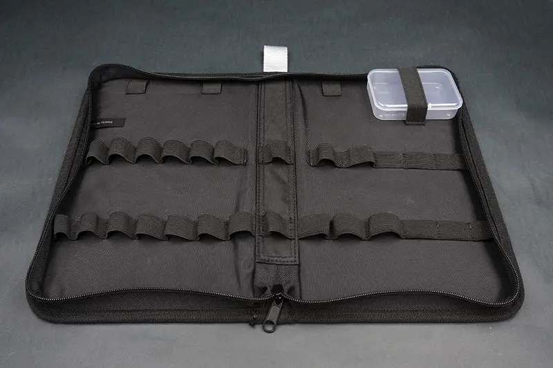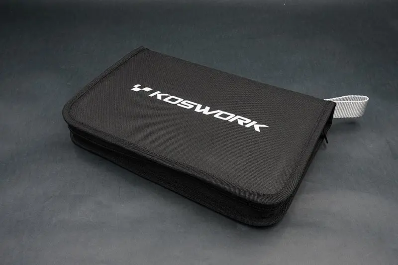 Keep your RC car tools and Kyosho spare parts organised with this practical Koswork foldable tool bag. Whether you're working on your radio controlled car at the track or at home, this compact carry solution holds most of your essential tools and accessories. The durable construction features elastic tool loops for secure storage and a convenient carry strap for easy transport. A separate parts box (88x63x21mm) is included for smaller components and fasteners.