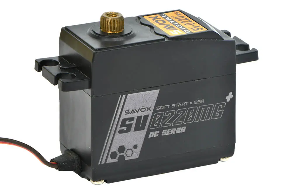 The Savox SV0220MG+ is a versatile high voltage digital servo suitable for aircraft, helis, boats and on-road cars.
