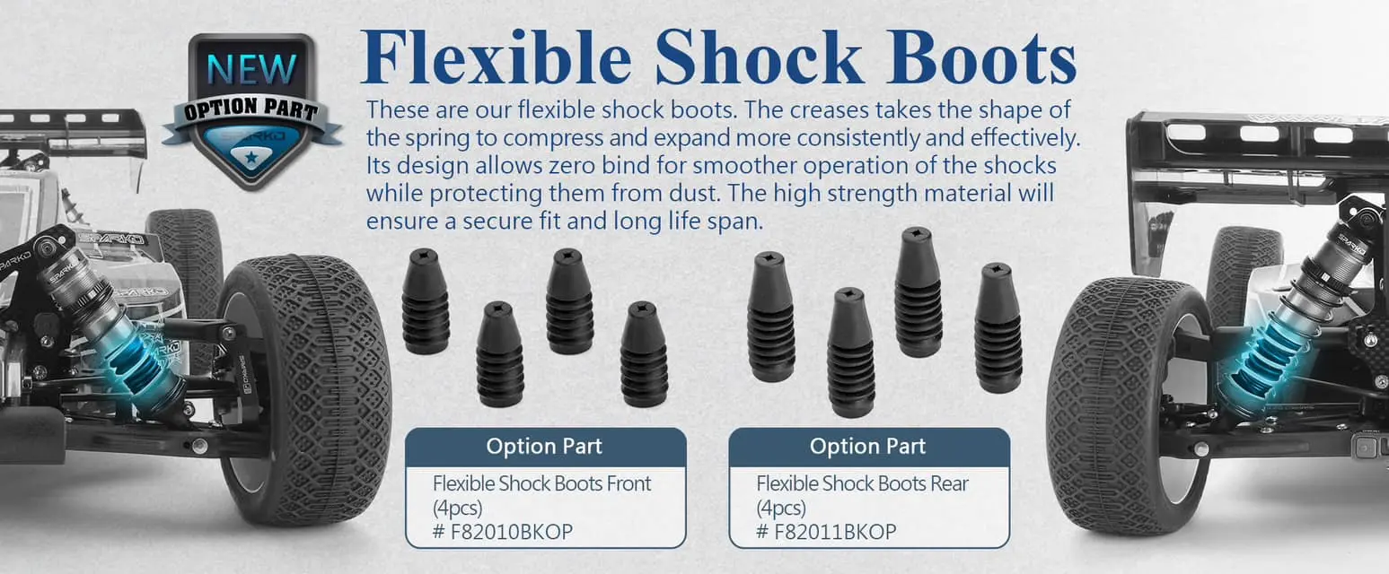 Maintain peak performance on your Sparko RC radio controlled car with these genuine Flexible Shock Boots for the F8. Designed to protect your suspension components from dirt, debris and moisture, these rear shock boots are an essential upgrade for serious hobbyists. Whether you're racing competitively or enjoying recreational driving, quality Sparko parts like these ensure your RC car stays in top condition. This set includes four boots, giving you complete rear suspension coverage.