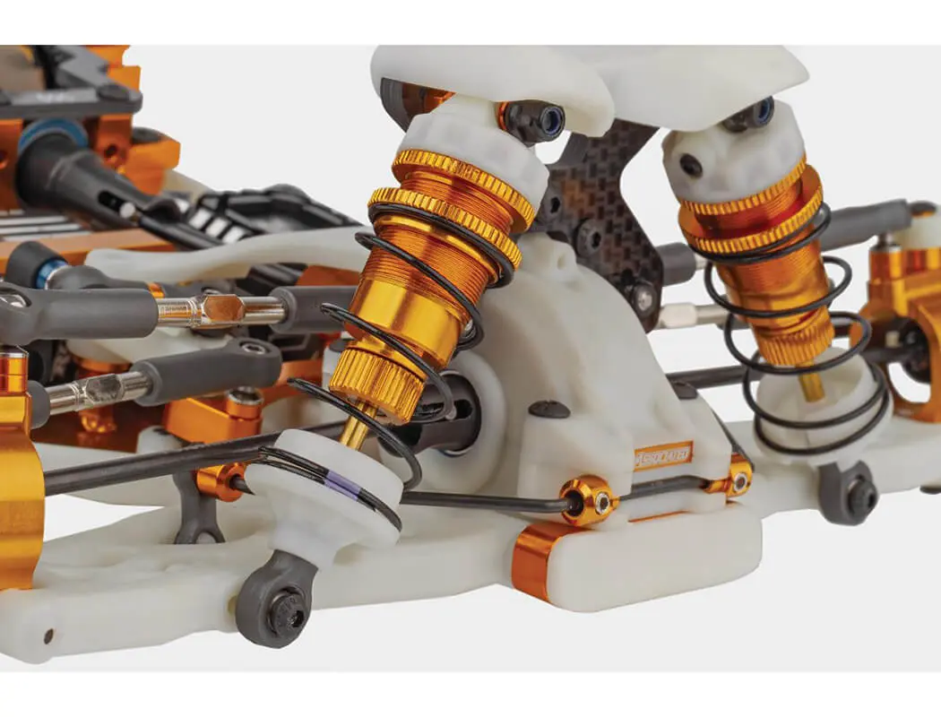 Enhanced aerodynamics come standard with a low-profile body and two rear wing mount heights. The RC10B84D is finished with shock tower covers, 3.5mm turnbuckles and ballcups, and 13mm big-bore shocks, providing the ultimate blend of strength, precision, and performance, the RC10B84 is your key to place top of the podium!