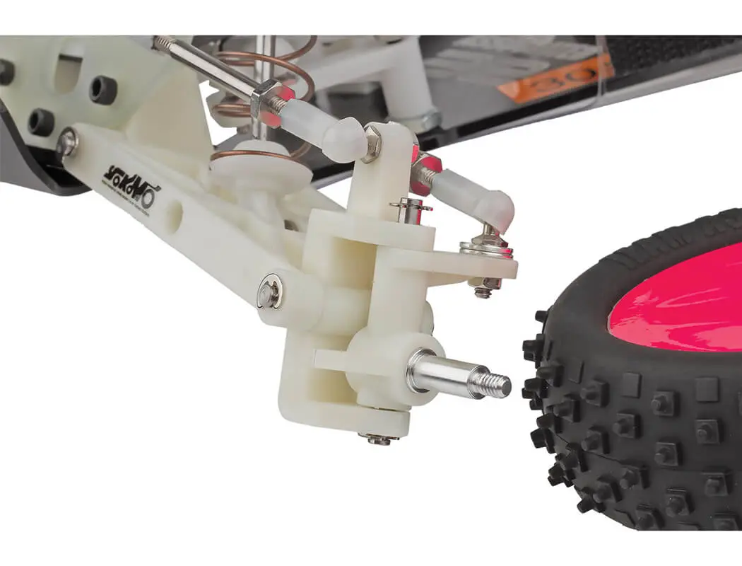 A Full race-tuned suspension with long-arm independent suspension and hard anodized coil-over shocks help smooth out the bumps. Low profile Stealth® transmission and slipper is protected by an integrated motor/heat sink.