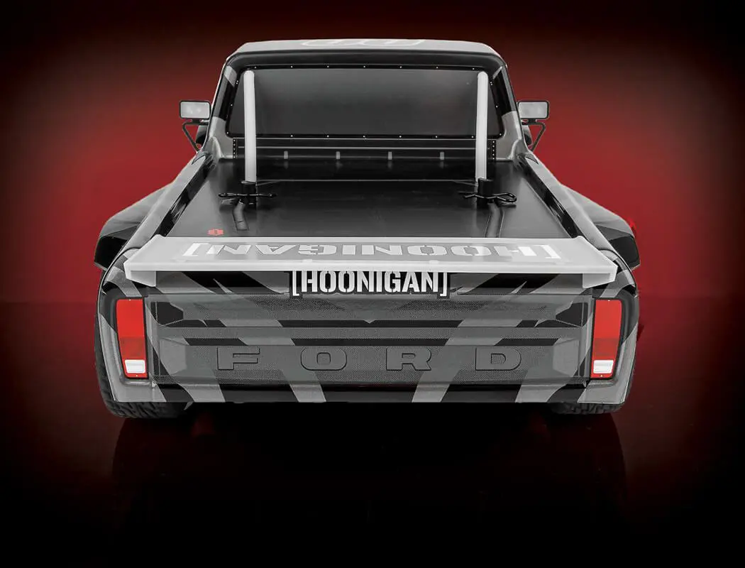 Capture authentic Hoonigan attitude in 1/14 scale with this ready-to-run street truck. The licensed 1977 Ford F-150 body combines genuine styling with proven performance engineering, delivering surprising thrills from its Reedy Sport 390 brushed motor. Compact 330mm length suits indoor and outdoor driving, whilst sealed differentials and coil-over shocks ensure composed handling. Includes 2.4GHz radio and everything needed straight from the box.