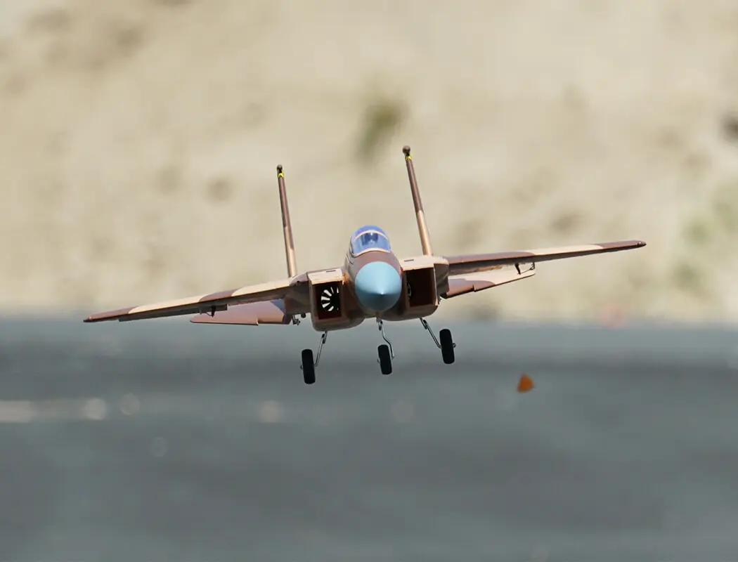 Twin 40mm EDFs deliver abundant thrust for dynamic aerobatics on this streamlined F-15 scale jet. Factory-fitted brushless motors and ESCs require only 4S LiPo, landing gear, and radio gear to fly. Achieves 3–8 minutes airtime. Suits experienced RC pilots seeking high-performance fighter jet action with authentic design details.