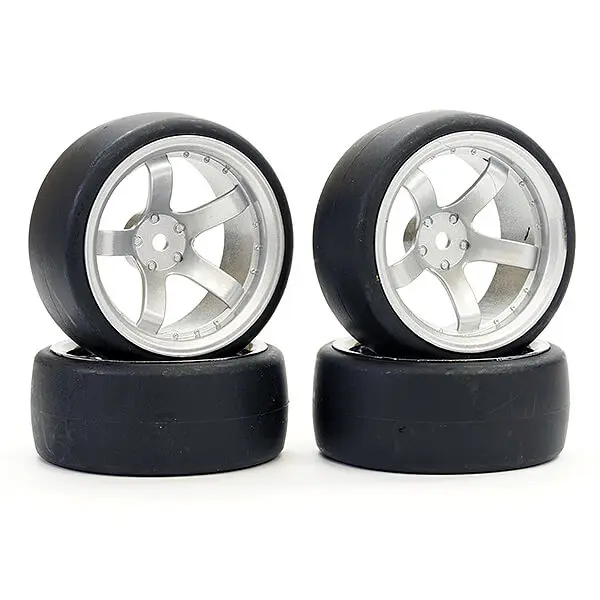 Fastrax 1/10 (4) Drift D1 Tyre W/9mm 5-Spoke Wheel- Satin Sil