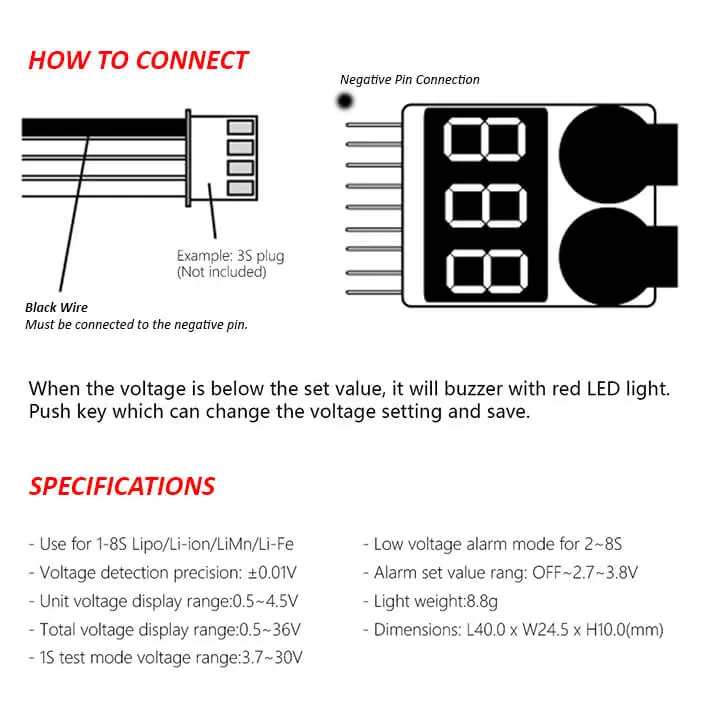 Keep tabs on your LiPo battery health with this handy voltage meter from Etronix, a trusted name in RC hobby UK circles. Whether you're running radio controlled car races or casual track sessions, knowing your battery's state of charge is essential for maintaining performance and protecting your investment. This compact cased meter features an audible alarm that alerts you when voltage drops, ensuring you never overdischarge your cells.