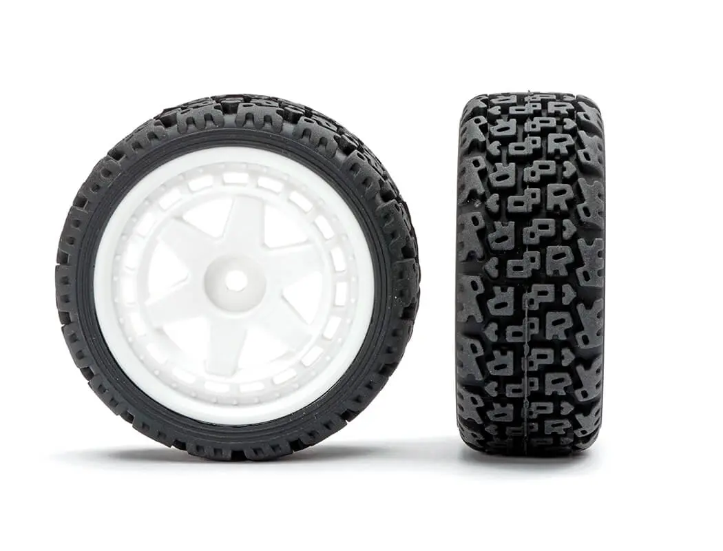 Upgrade your radio controlled car with this complete Fastrax wheel and tyre package, designed for 1/10 scale rally competition. The distinctive 'R' Block tread pattern delivers excellent grip across varied terrain, whilst the crisp white 6-spoke wheels add genuine style to your RC vehicle. As a trusted name in the RC hobby UK scene, Fastrax delivers proven performance at an affordable price point. This four-piece set provides everything you need to get racing, making it an ideal choice for enthusiasts seeking quality RC car parts without breaking the bank.