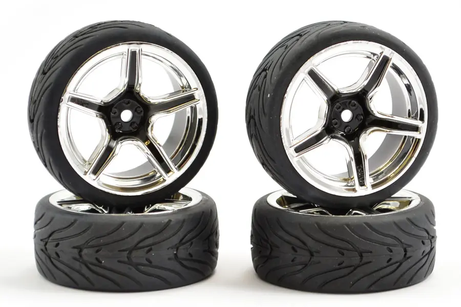 Fastrax 1/10 Street/Tread Tyre 5sp Black/Chrome Wheel