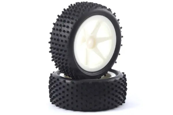- 1/10th scale front buggy tyres, pre-mounted on spoked wheels