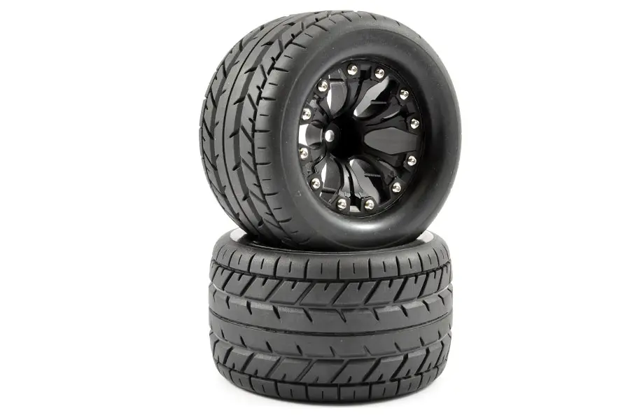 Suitable for most 1:10 Monster trucks with 12mm Hex fit and 5mm axle. Sold as pair.