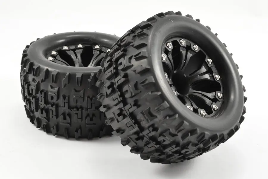 Suitable for most 1:10 Monster trucks with 12mm Hex fit and 5mm axle. Sold as pair.