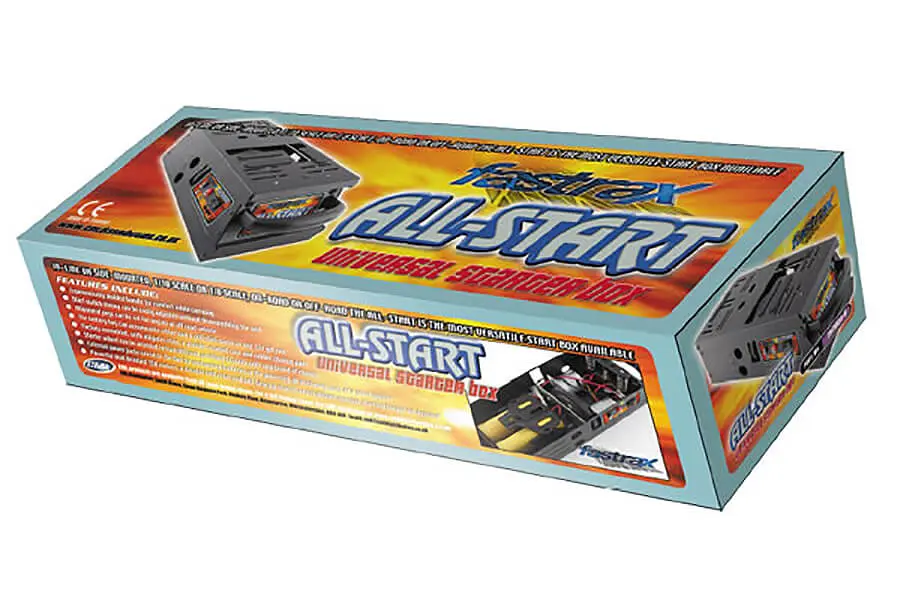 Hard wearing universal starter box. Compatible with in-line or side-mounted, 1/10th and 1/8th, on or off-road cars. The Fastrax Allstart is the most versatile starter box currently available.