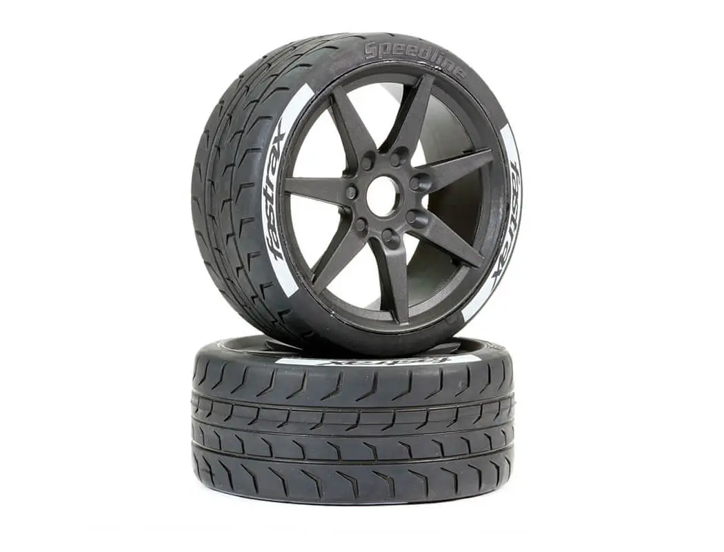 Upgrade your radio controlled car's performance with Fastrax Supaforza Front 45° Tyres, engineered for superior grip and handling on varied terrain. These premium RC tyres feature a distinctive tread pattern designed to deliver consistent traction whether you're racing on-road or tackling off-road challenges. The included black 17mm hex wheels offer a perfect fitment for popular RC car platforms, making these RC wheels UK enthusiasts' go-to choice for reliability and performance.