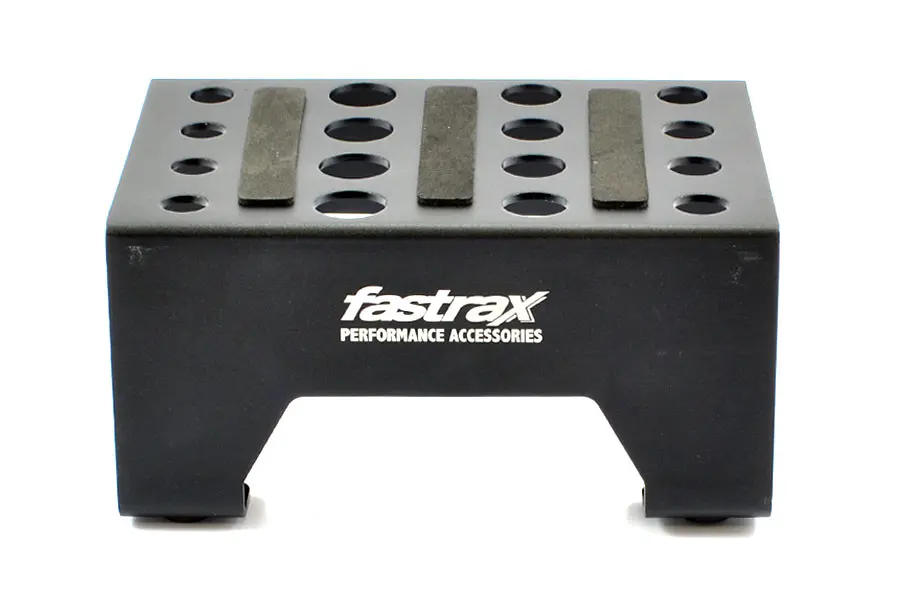 The Fastrax car stand is perfect for performing maintenance on your RC vehicle. The rubber feet hold the stand in place allowing you to work on your 1/10th or 1/8th car while the magnetic side strip can safely hold tools or screws so they are always to hand.