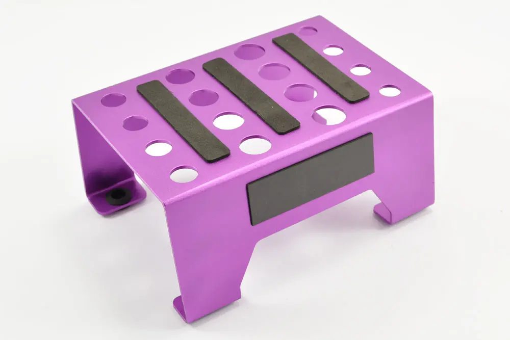 The Fastrax car stand is perfect for performing maintenance on your RC vehicle. The rubber feet hold the stand in place allowing you to work on your 1/10th or 1/8th car while the magnetic side strip can safely hold tools or screws so they are always to hand.