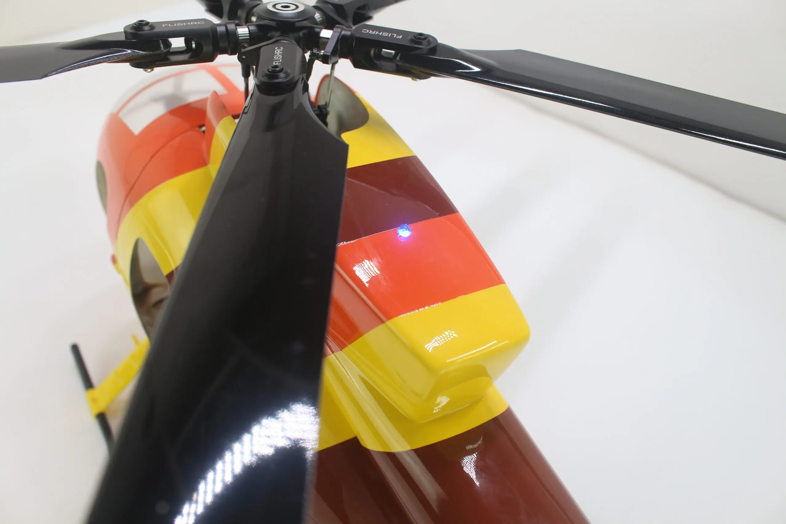 The fully metal rotor head is engineered for strength, stability, and realism, capable of withstanding high flight loads and vibrations. Designed to mimic the full-scale MD500’s rotor system for professional-grade performance. -