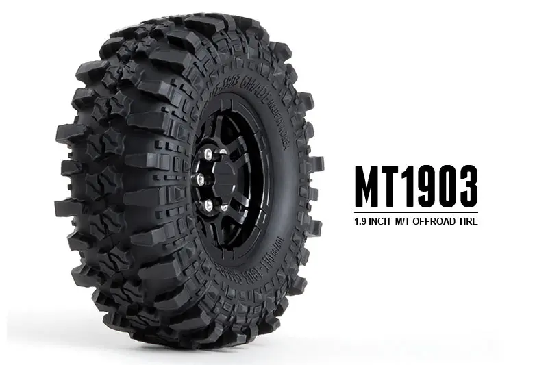 Gmade MT1903 tyres are high grip tyres designed for various rock crawlers & trucks. These tyres are made of super soft compounds for good grip over all kind of terrain. Large, deep lugs provide exceptional traction in rock, mud, and dirt. Fits 1.9 inch size wheels. Sold in pairs. Inner foams are included.