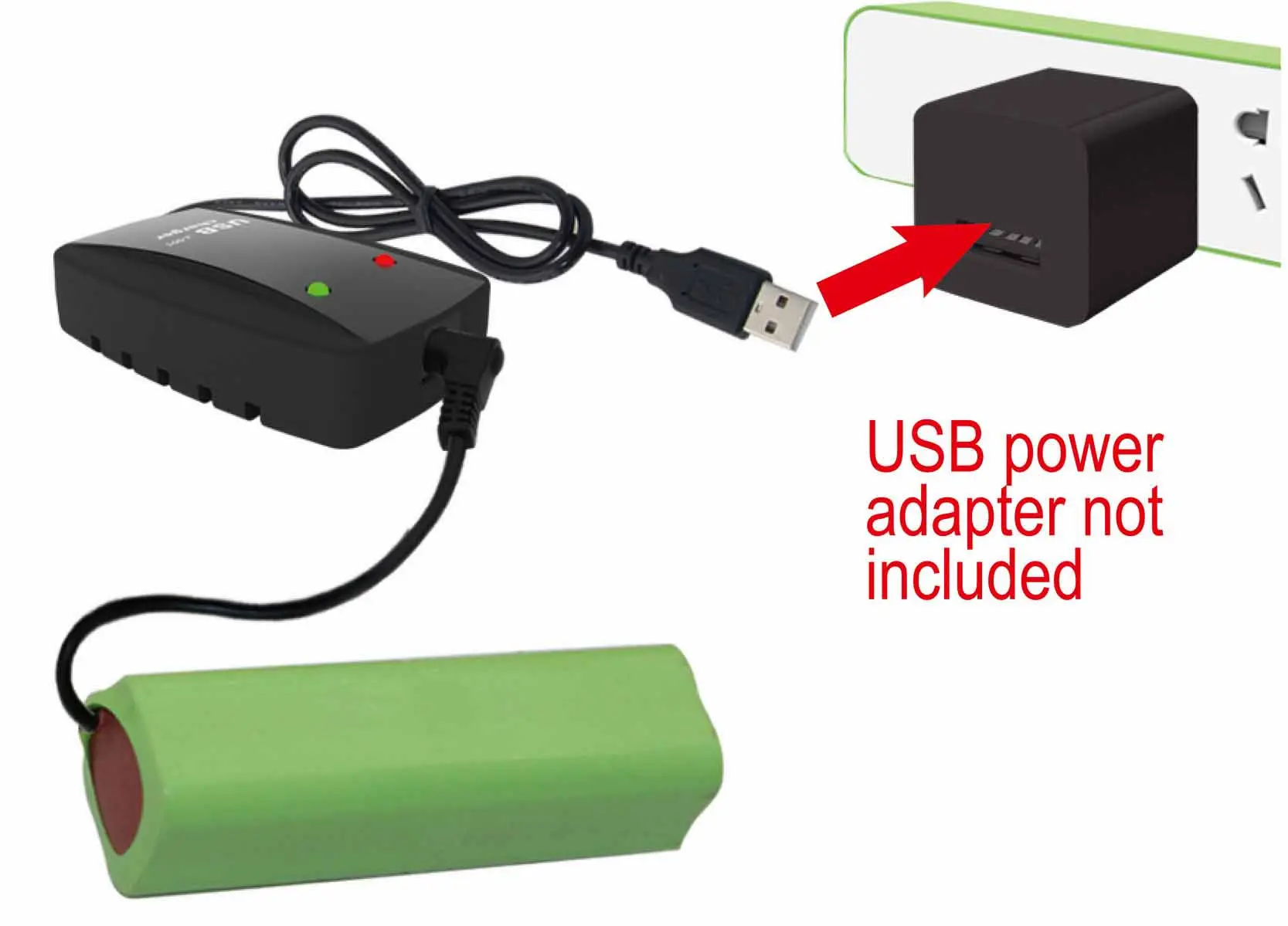 E). USB Power Charging: The USB charger can easily connect with power adapter, making battery charging more safe and convenient.