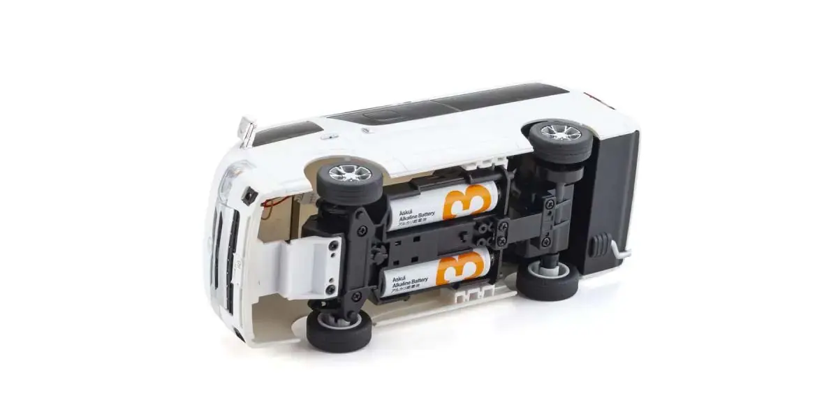 Experience the charm of micro-scale RC motoring with this officially licensed Toyota Hi-Ace Super GL from the acclaimed Mini-Z by Kyosho range. This ready to run RC car arrives fully assembled and pre-painted to display-quality standards, making it the perfect entry point for those stepping up from toy-grade vehicles to proper hobby-grade radio controlled cars. The 1/28 scale electric RC car features a realistic drive mechanism that mimics real-world driving dynamics—gentle inputs produce wide turns whilst full steering commands deliver tight cornering, just like a genuine vehicle.