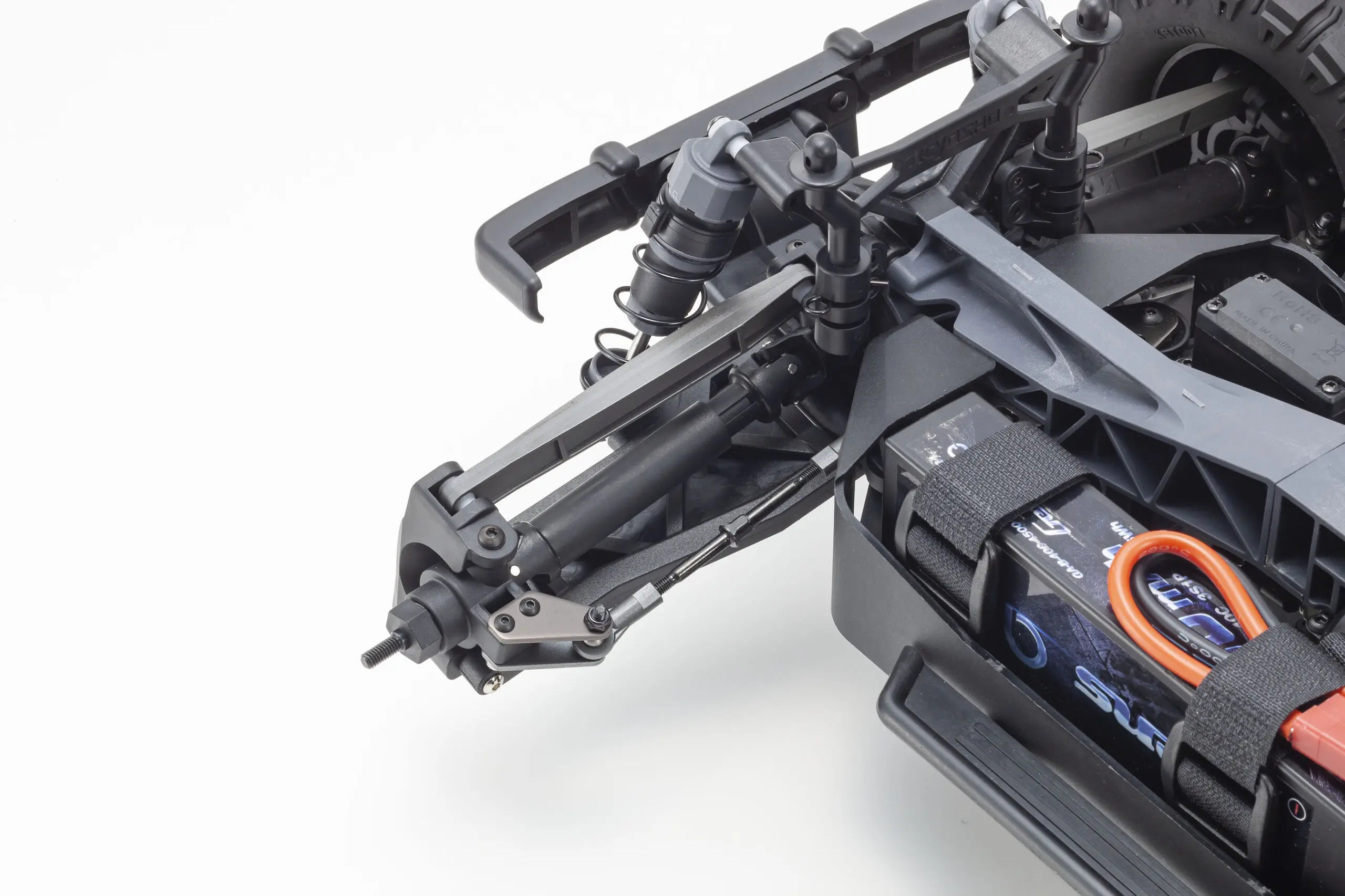 Features battery holder suitable for mounting 3S LiPo battery. By offsetting the left side mount of the battery, left-right weight balance can be set to the driver’s preference.Also compatible with 2S LiPo battery.