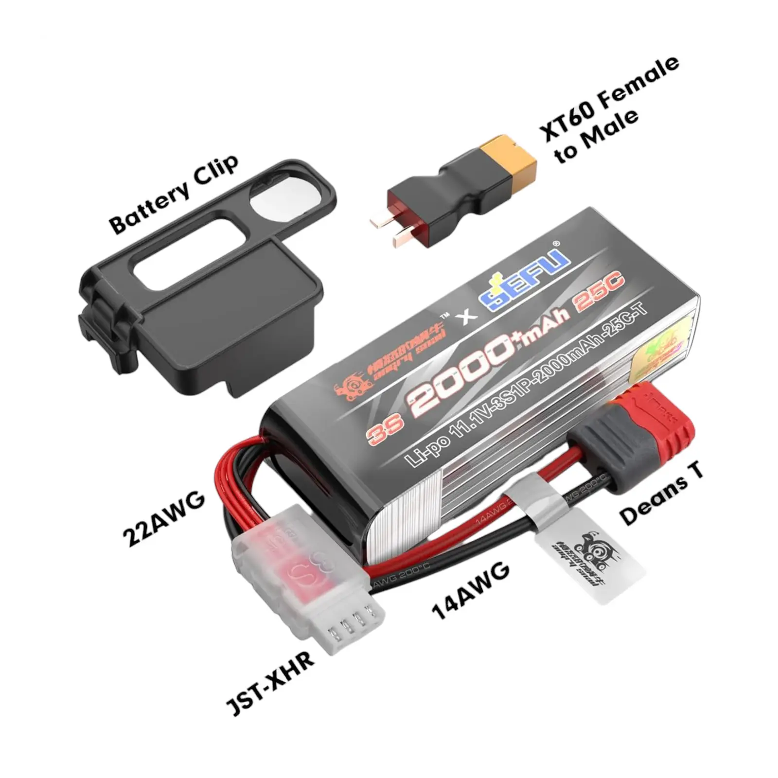 MJX 3S 11.1v 2000mAh capacity LiPo battery kit to fit all MJX 1:14 and 1:16 models.