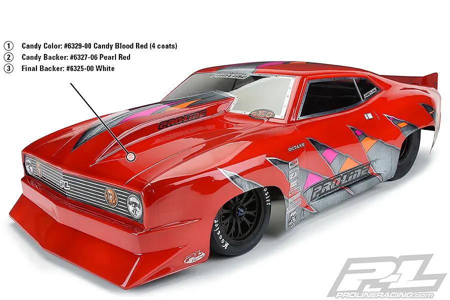 This is the all-new Pro-Line RC Body Paint – Candy Blood Red specially formulated for Polycarbonate. Have you been wanting a specialty paint that is easy to use and can add some depth to your color scheme? Pro-Line has a Ready to Spray 100% Transparent Water Based Dye Candy Paint that adds to any pearl or metallic colors. Pro-Line's Team of Innovators have painted literally thousands of RC car bodies over the years and now offers ready to spray R/C Body paints specially formulated to help you achieve the same jaw-dropping results we do. Developed by R/C body painters for painters, this water-based airbrush paint is ultra-flexible, extremely durable and easy to use. Have the confidence that you are spraying the best!