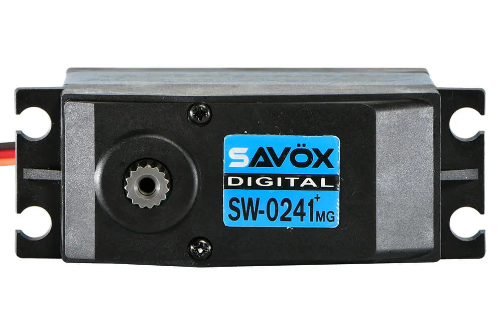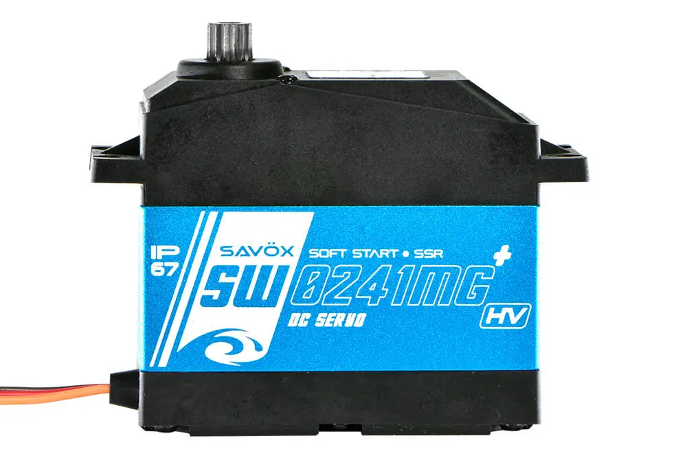 The Savox SW0241MG+ is our waterproof high torque 5th scale metal gear digital servo. This servo is high voltage capable and features of torque @ 7.4V