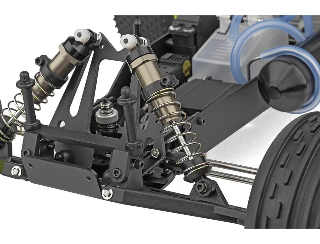 - Championship-proven 2WD nitro racing platform with advanced four-wheel independent suspension