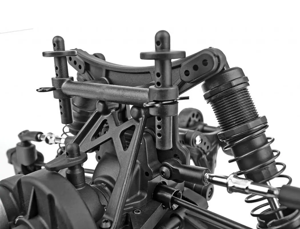 Built for durability and tuneability, the Reflex 14MT features a robust moulded tub chassis design reinforced with a covered aluminium centre driveshaft running through three sealed differentials. The all-metal differential ring and pinion gears, heavy-duty aluminium steering rack and front universal driveshafts ensure this radio controlled car can handle serious punishment. Threaded coil-over shock absorbers with adjustable turnbuckles let you fine-tune the suspension for different terrain, whilst the high-torque digital servo with spring-style saver keeps steering response sharp and reliable. The rugged wheelie bar, impact-absorbing LED-equipped front bumper and aggressive all-terrain tyres complete a package that's ready for action anywhere, anytime. Team Associated have engineered genuine hobby-grade performance that RC enthusiasts and collectors across the UK appreciate, with extensive hop-up and RC car parts UK compatibility for future upgrades.