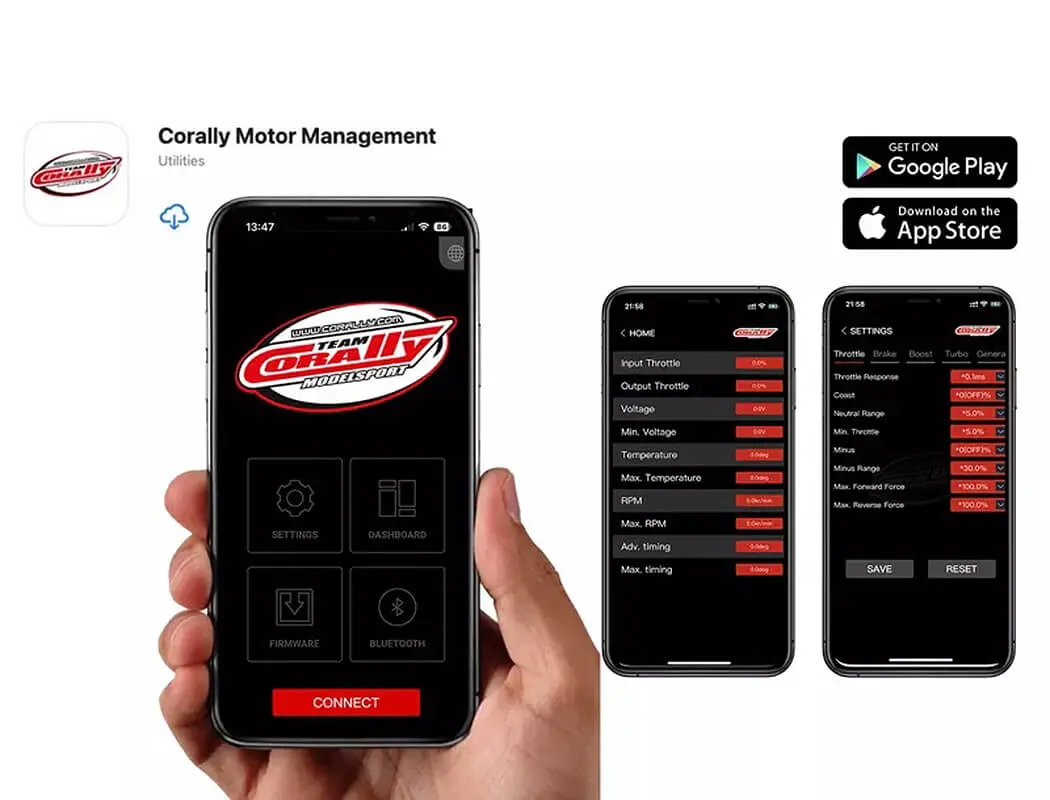 Enjoy unparalleled convenience with direct remote programming through the custom Corally iOS and Android App. All the communication devices are seamlessly integrated, allowing you to fine-tune your controller settings effortlessly.