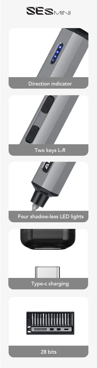 Ses Mini Electric Screwdriver With Alu Case (28 in 1) Space Gray